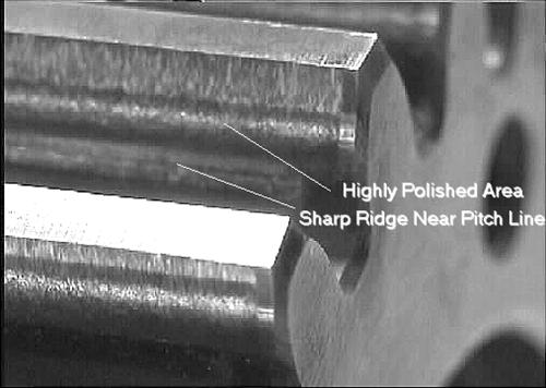 圖6.該照片顯示了齒輪齒側(cè)的磨損磨損。