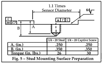 有四種主要方法用于將傳感器連接到預(yù)測性維護(hù)中的監(jiān)控位置。它們采用螺柱安裝,粘合劑安裝,磁力安裝以及探針尖端或刺針的使用。每種方法都會影響加速度計的***頻響應(yīng)。螺柱安裝提供***寬的頻率響應(yīng)和***安全可靠的附件。圖5顯示了螺柱安裝傳感器的理想表面準(zhǔn)備。